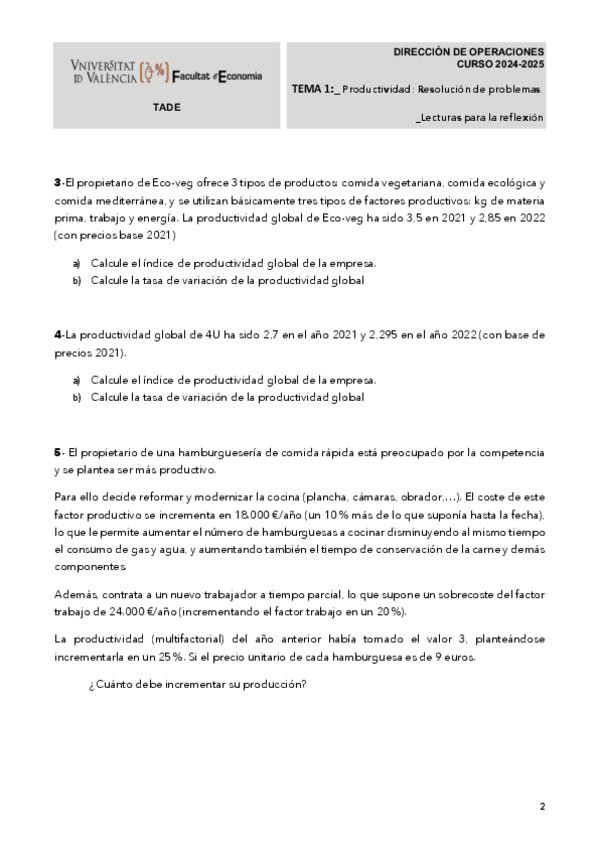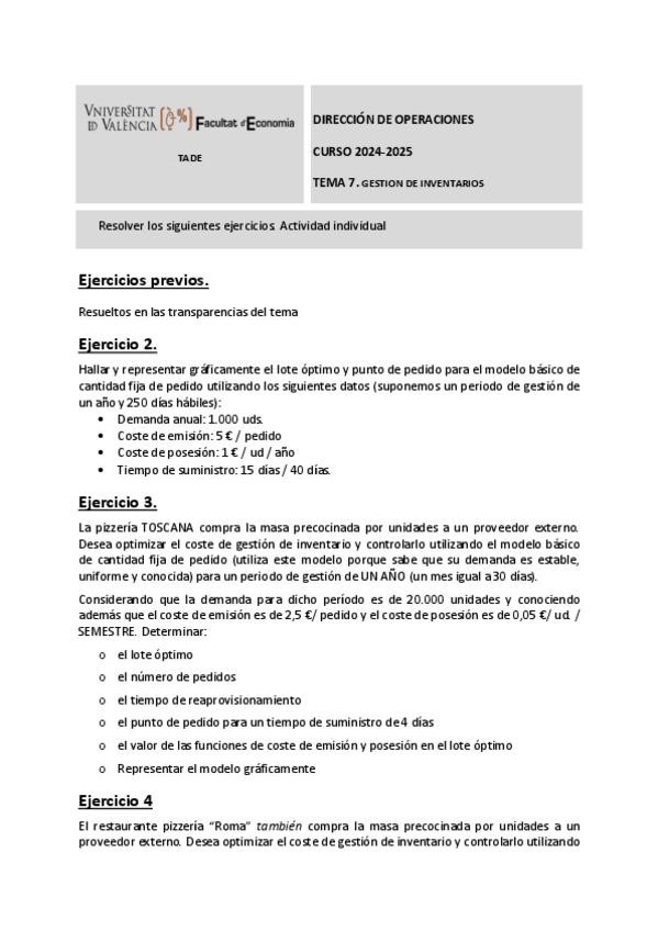 He publicado nuevos apuntes de 3º Dirección de Operaciones: TEMA-2EJERCICIOS.pdf