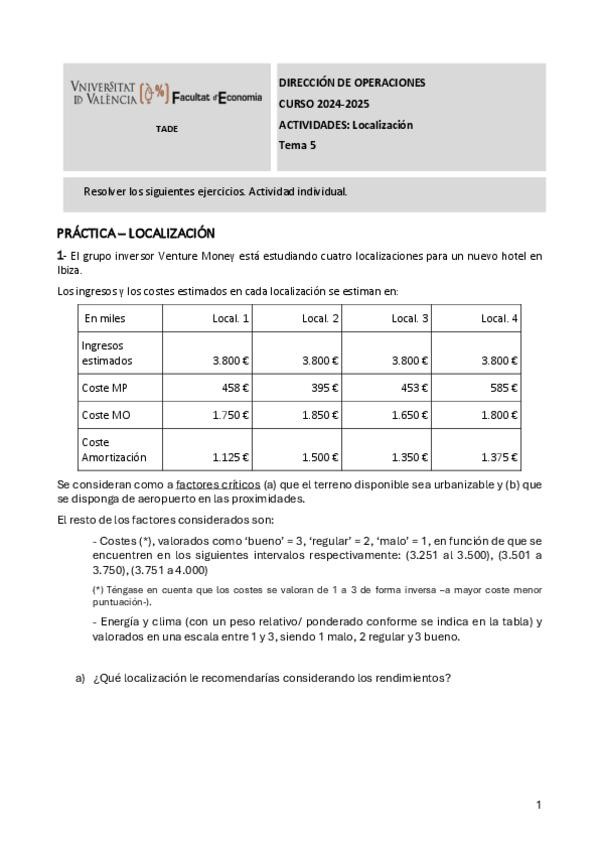 He publicado nuevos apuntes de 3º Dirección de Operaciones: PracticaT5Localizacion.pdf