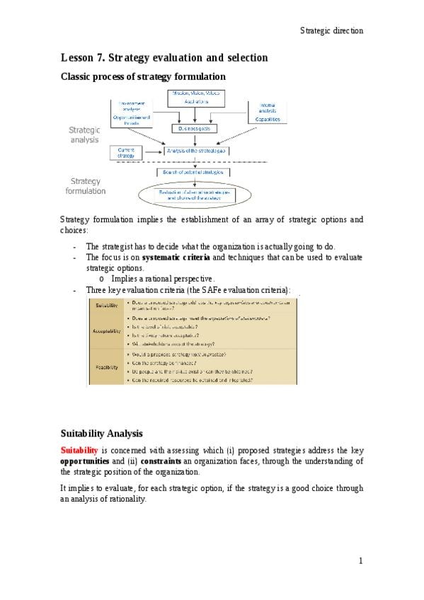 He publicado nuevos apuntes de 2º Dirección Estratégica de la Empresa: Lesson-7.-Strategy-evalution-and-selection.docx