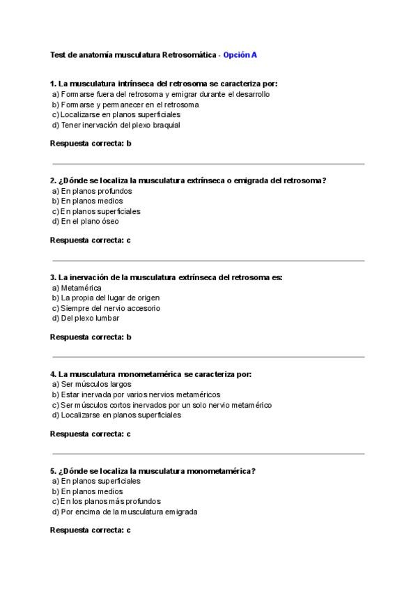 He publicado nuevos test de 1º Anatomía Humana: Test de Anatomía Musculatura Retrosomática - Aparato Locomotor Tema 2 - Opción A, B y C.pdf