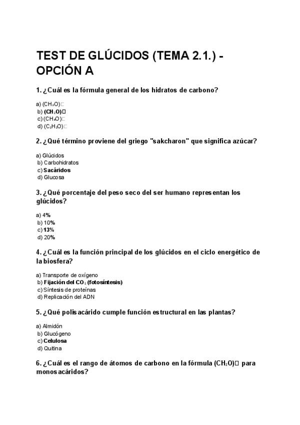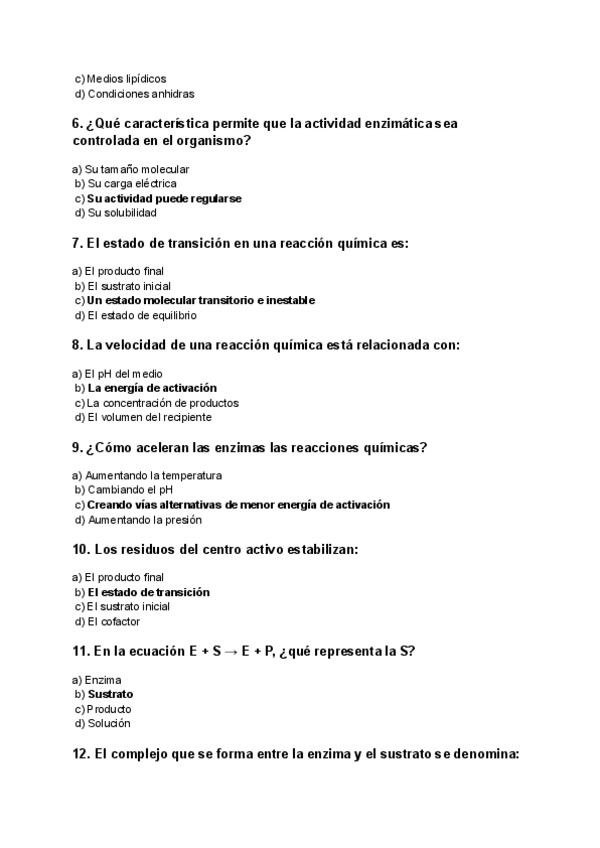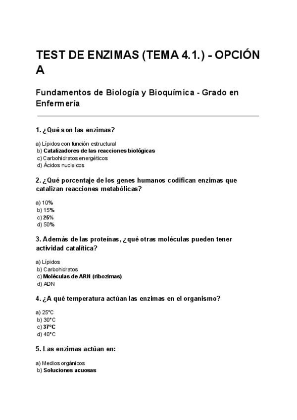 Simulacro Test Bioquímica - Enzimas, coenzimas y proteínas