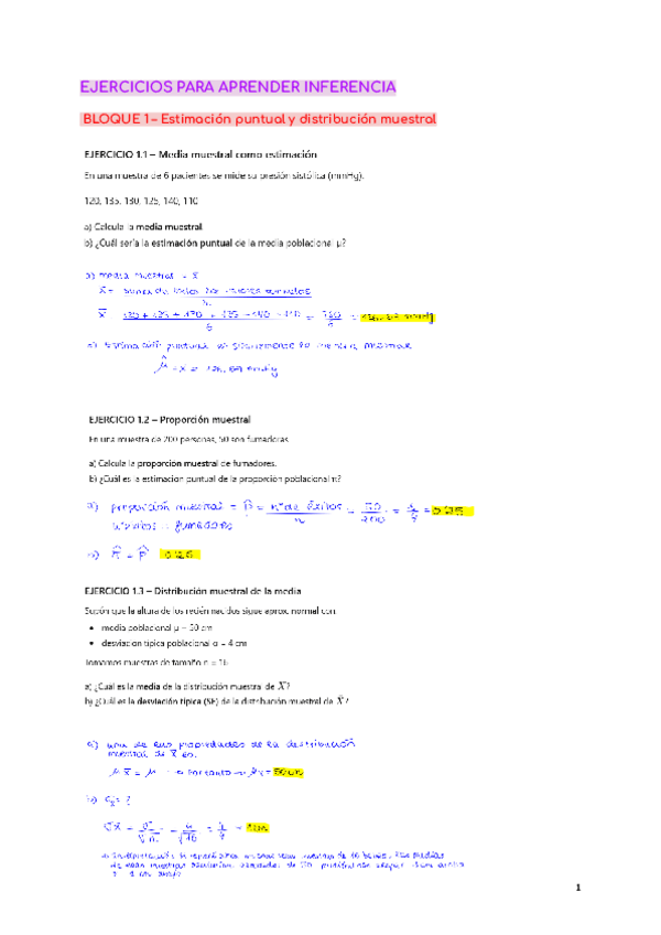 ejercicios para empezar a aprender Inferencia y a razonar conceptos importantes en el tema.