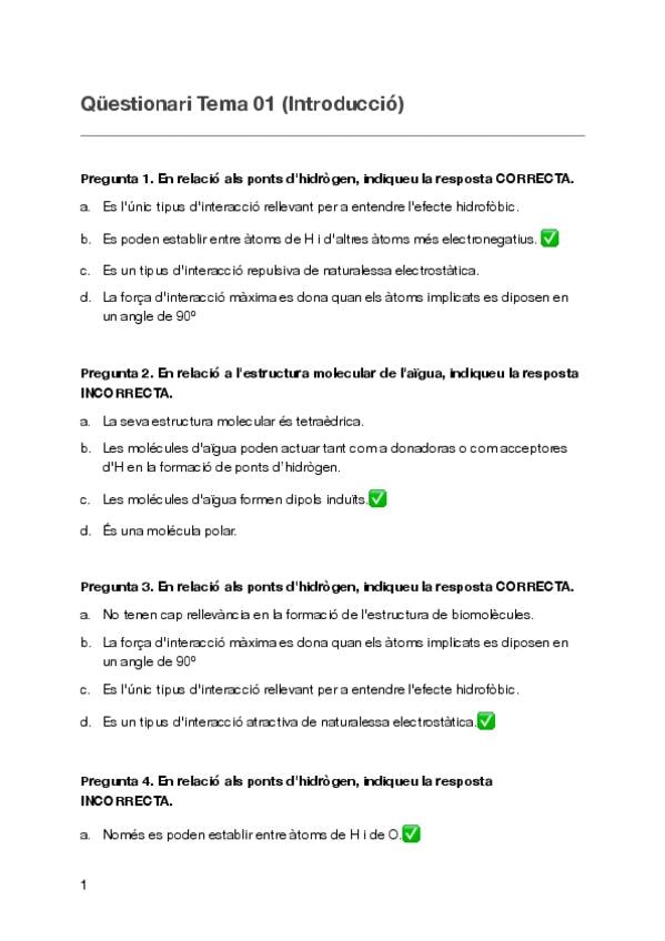 He publicado nuevos test de 1º Bioquímica I: Qüestionaris
