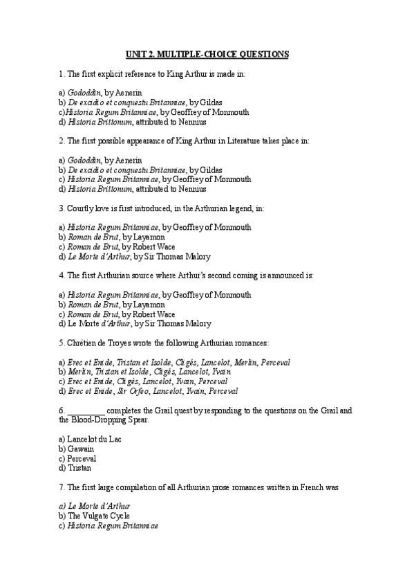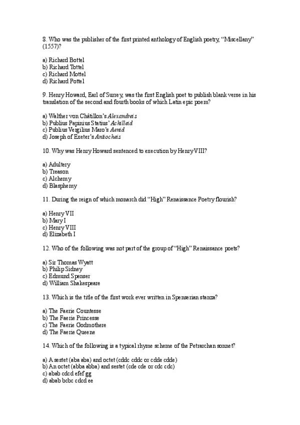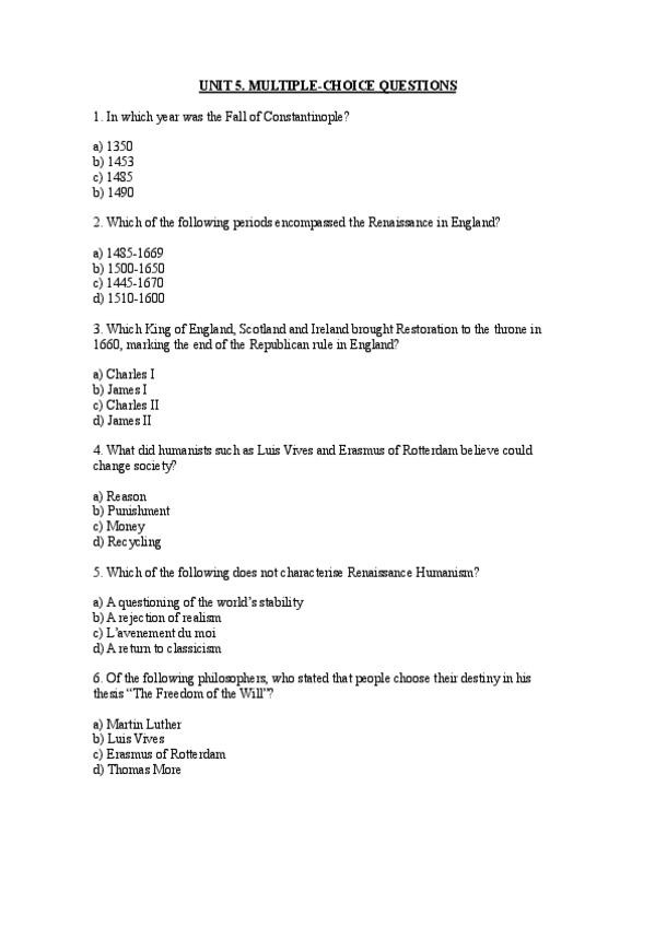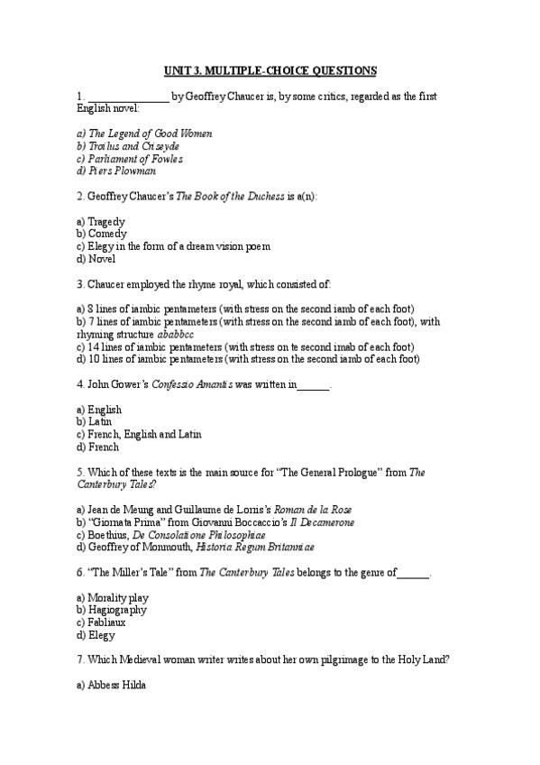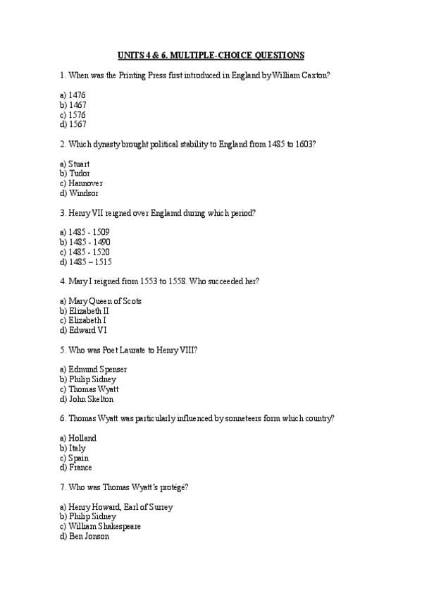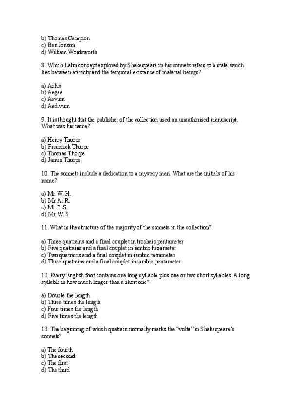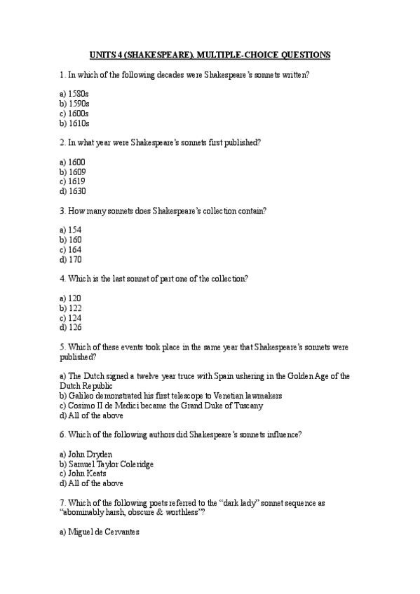 Multiple choice questions de la unidad 4 (Shakespeare)