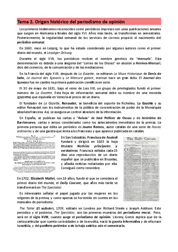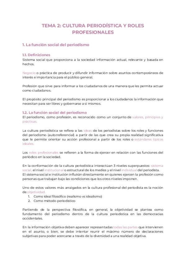 Apuntes Teoria e historia del periodismo tema 2 en castellano