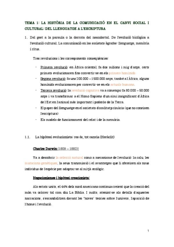 Tema 1 de Historia de la comunicación, contiene la pregunta del examen de este tema