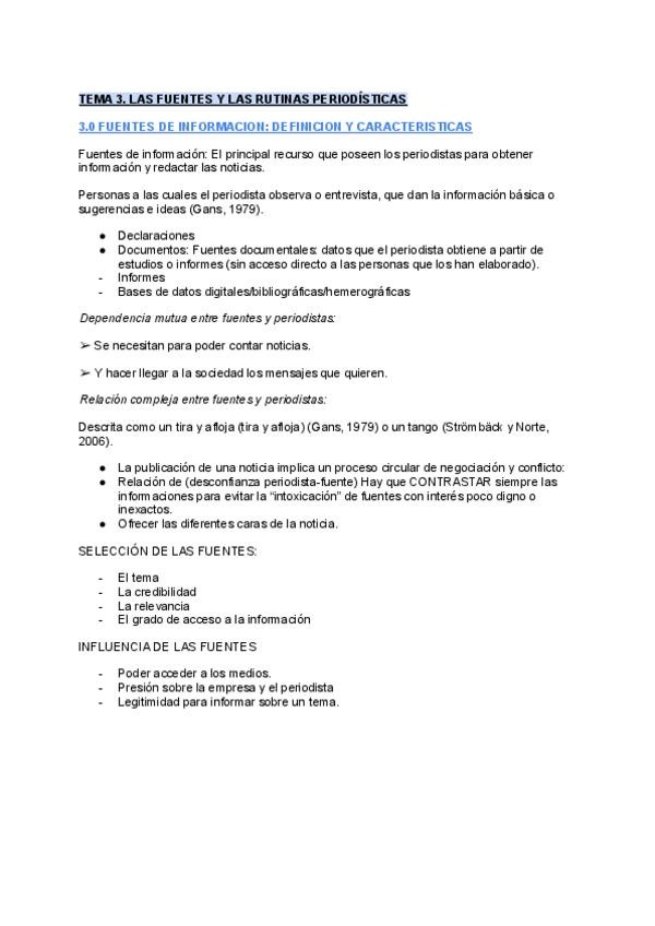 TEMA 3. LAS FUENTES Y LAS RUTINAS PRODUCTIVAS 3.0. Fuentes de información: definición y características 3.1. Tipo de fuentes 3.2. Verificación y atribución 3.3. Rutinas productivas 3.4. Efectos de las rutinas productivas 3.5. Etapas del trabajo periodísti
