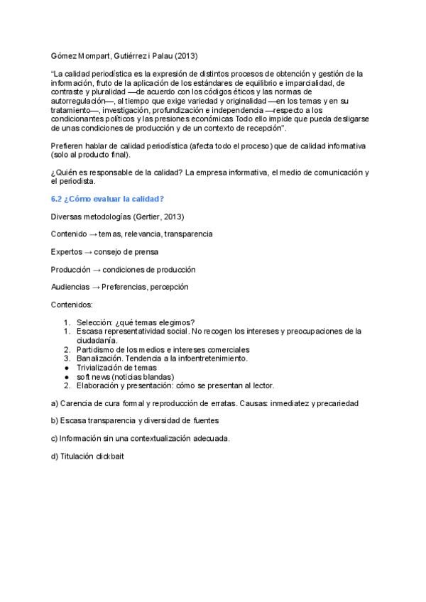TEMA 6. PERIODISMO DE CALIDAD 6.1. Definición 6.2 ¿Cómo evaluar la calidad? 6.3 Iniciativas para mejoras