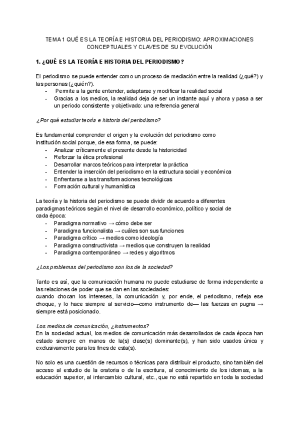 Apuntes Teoria e historia del periodismo tema 2 en castellano