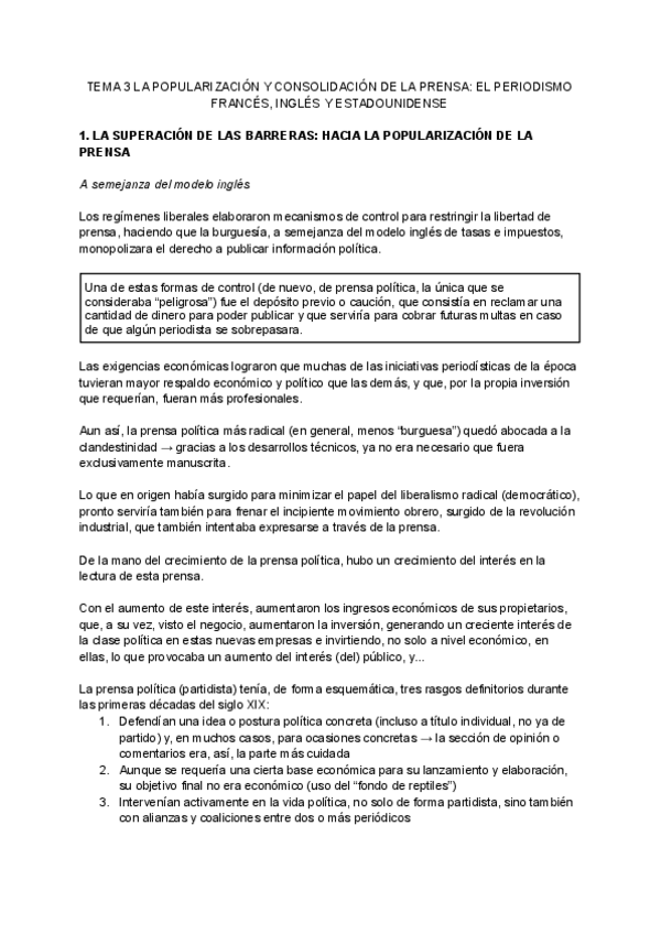Apuntes tema 3 Teoria e historia del periodismo en castellano