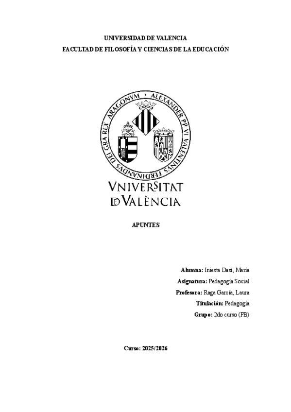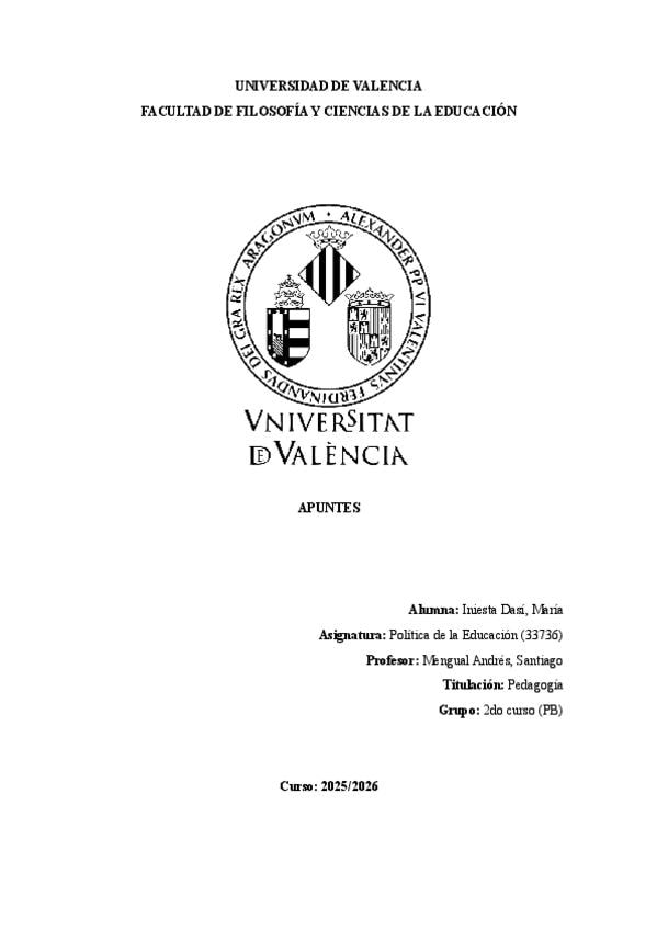Apuntes completos de la asignatura de Teoría de la Educación del 1er curso de Pedagogía en la Universitat de València.