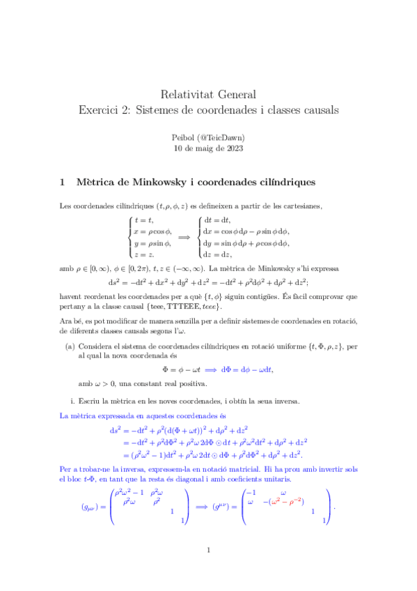 He publicado nuevos ejercicios de 1º Relatividad General: Ejercicios-Relatividad-General.pdf