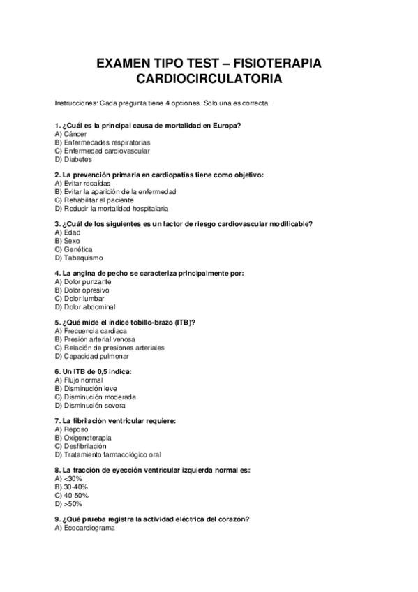 Preguntas tipo test fisioterapia cardiocirculatoria (NO es un examen oficial)