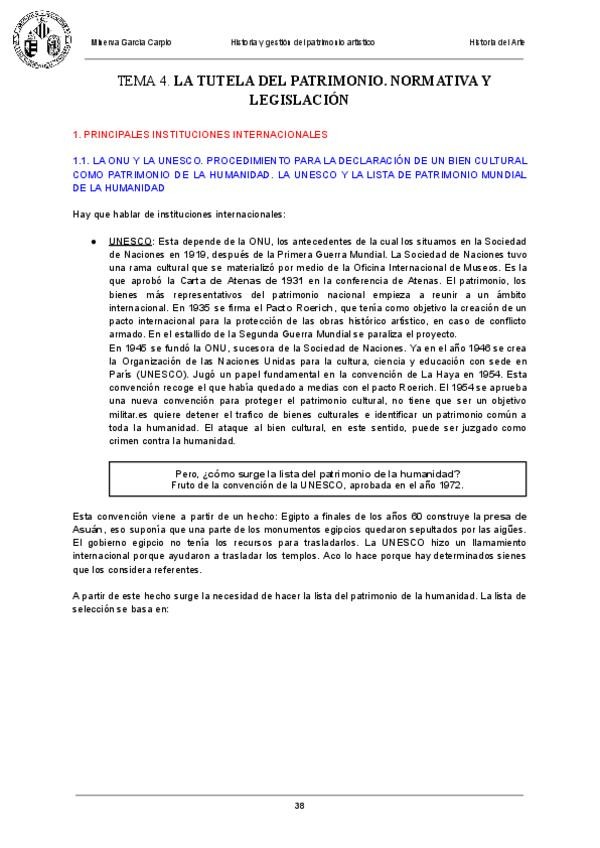 He publicado nuevos apuntes de 3º Historia y gestión del patrimonio artístico: legislación - opo A1 cuerpo de conservadores