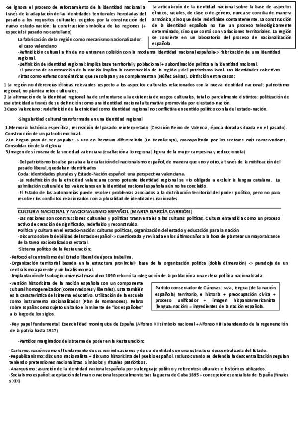 Resumen de: UN PAÍS TAN EXTRAÑO COMO CUALQUIER OTRO: LA CONSTRUCCIÓN DE LA IDENTIDAD NACIONAL ESPAÑOLA CONTEMPORÁNEA (FERRAN ARCHILÉS) CULTURA NACIONAL Y NACIONALISMO ESPAÑOL (MARTA GARCÍA CARRIÓN).. Esta un poco todo junto y pequeñito porque tenia que en