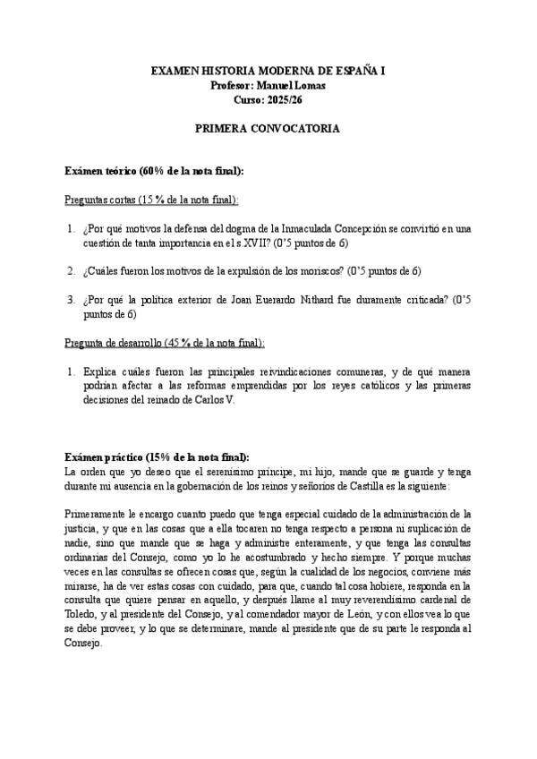 Exámenes Historia Moderna de España I