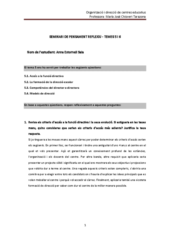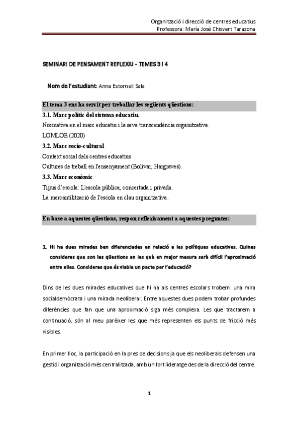 He publicado nuevos practicas de 1º Organización y Dirección de Centros: Seminari pensament reflexiu