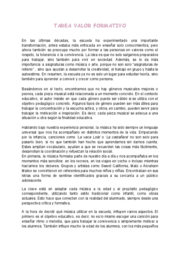 He publicado nuevos ejercicios de 1º Didáctica de la Música de la Educación Primaria: Tarea-valor-formativo.pdf