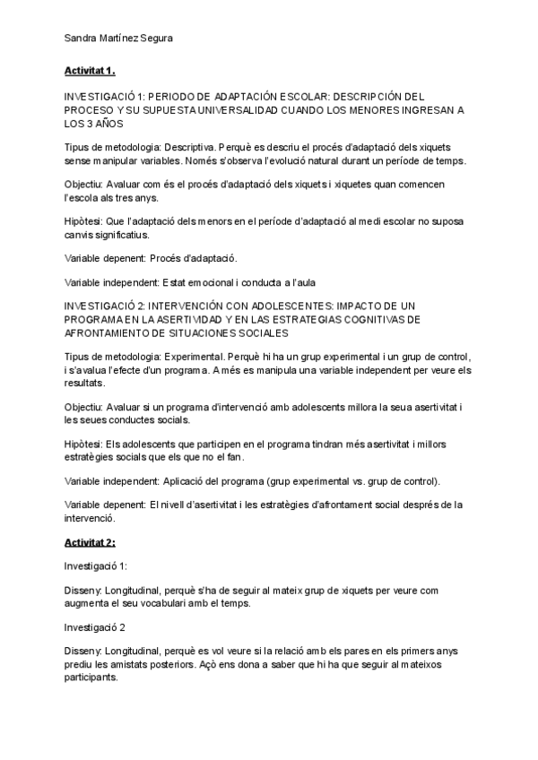 Tema 2 Pisologia del desenvolupament, metodologia i disseny Amb exercicis.