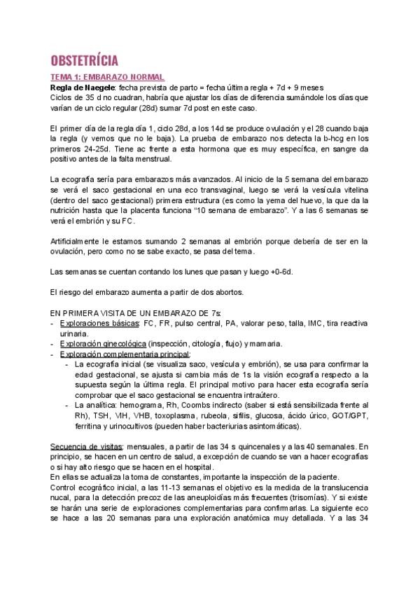 Apuntes clase OBSTETRICIA i GINE