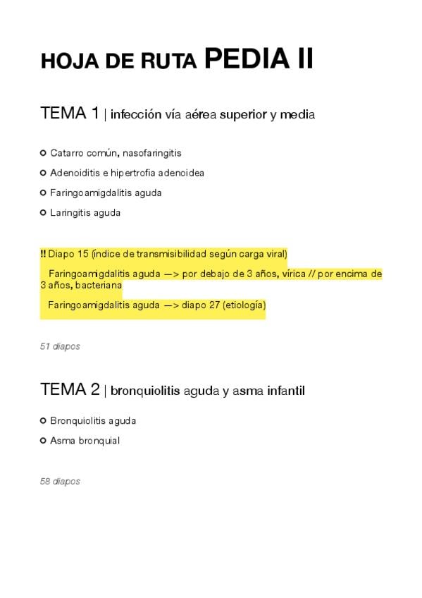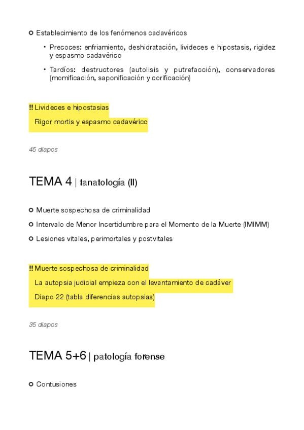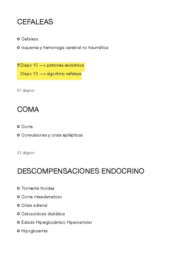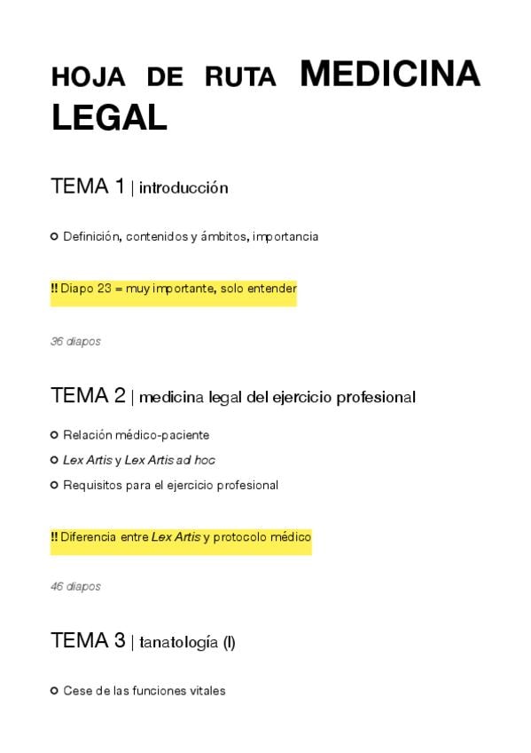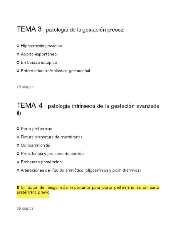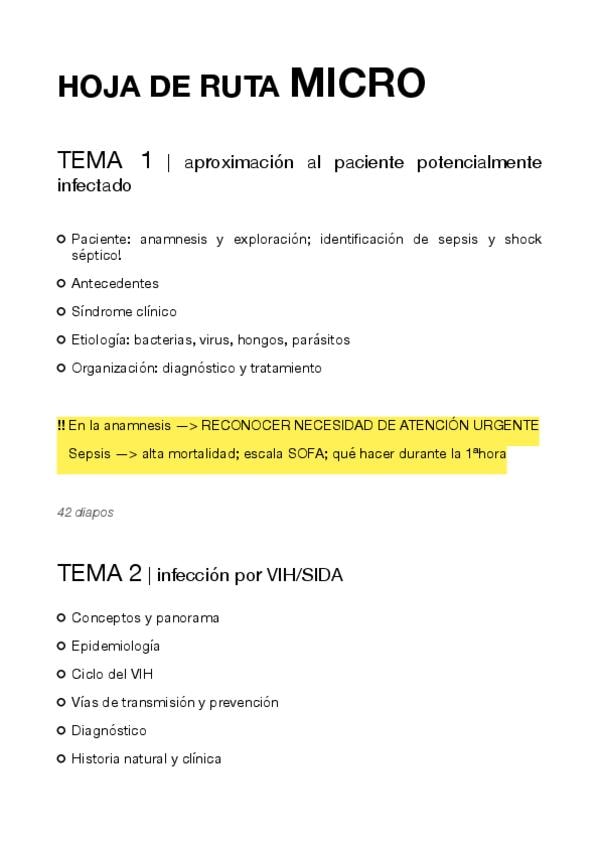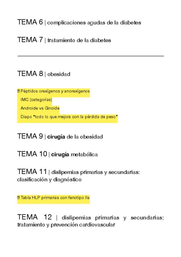 Esquema para tener un hilo conductor en el estudio (basado en el temario de la asignatura) - incluye puntos destacados en clase