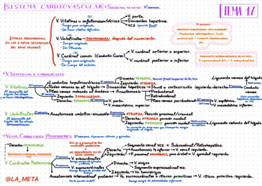 Esquema con imágenes de todo el Tema 17 de Embriología: Formación del sistema venoso, sistema cardiovascular.