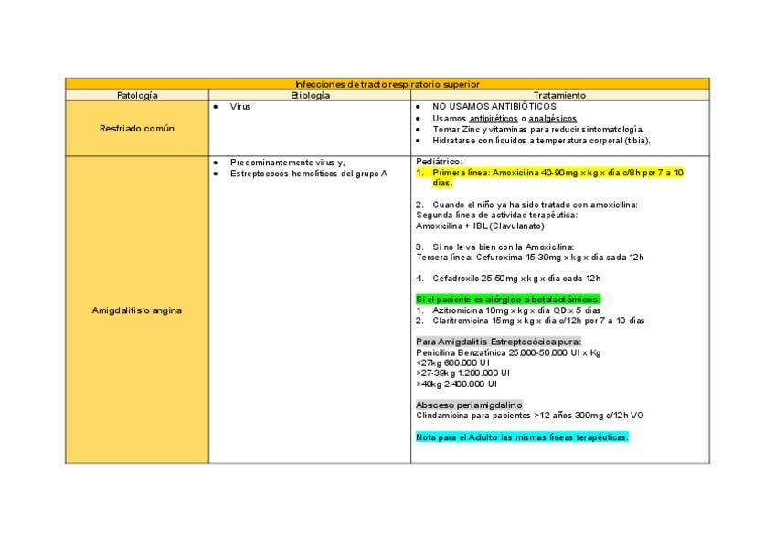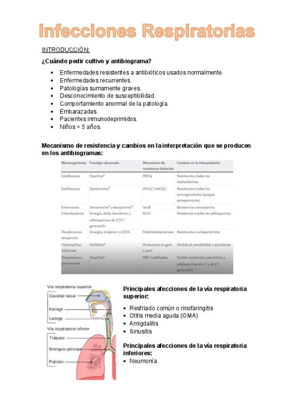 Esquema de los principales tratamientos en la infecciones respiratorias mas frecuentes