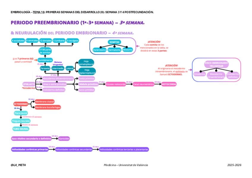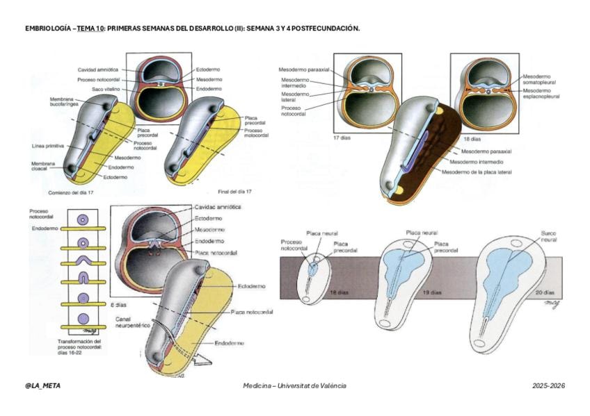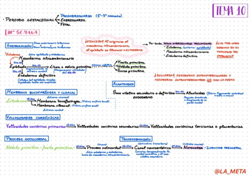Esquema con apuntes complementario a la publicación anterior. Tema 10 de Embriología.