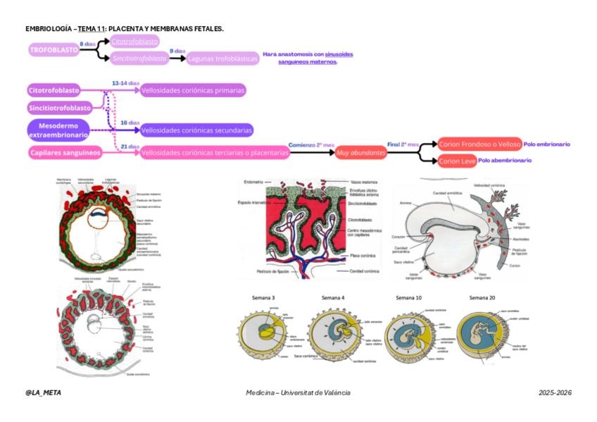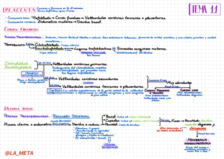 Esquema con apuntes complementario a la publicación anterior. Tema 11 de Embriología.