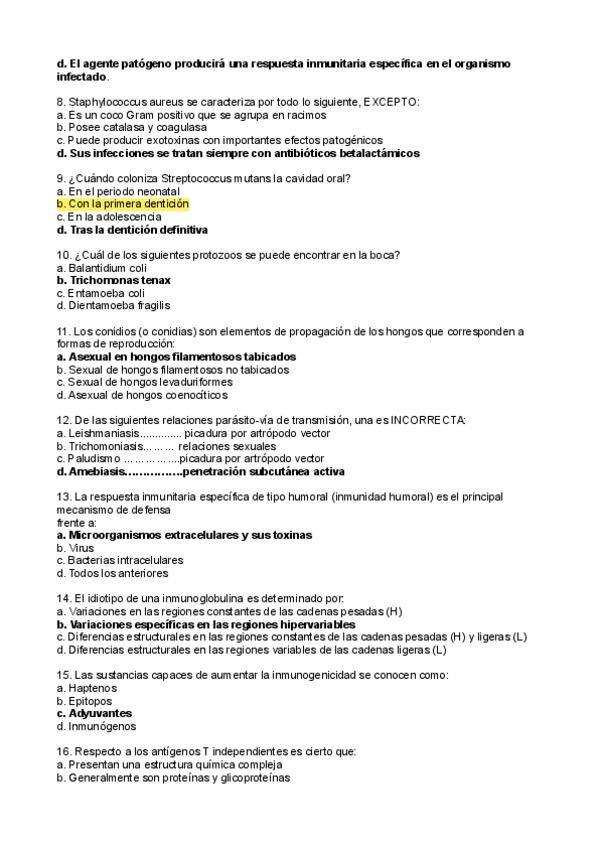 Preguntas de los cuestionarios hechos en clase, dividimos por temas, son preguntas de años anteriores