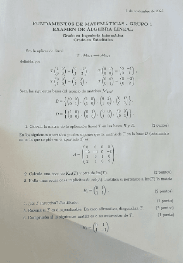 He publicado nuevos examenes de 1º Fundamentos de Matemáticas: 53-ExamenAlgebraLinealResuelto2019-20.pdf