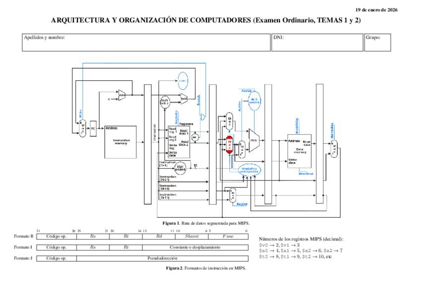 He publicado nuevos examenes de 2º Arquitectura y Organización de Computadoras: Ord-bloque1-Solucion.pdf
