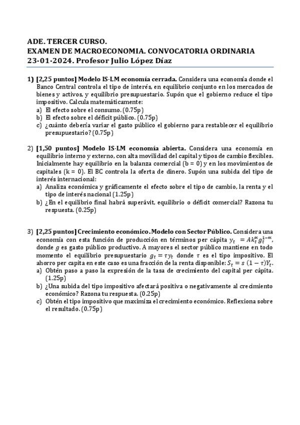 He publicado nuevos examenes de 3º Macroeconomía: Examen-20240209-Solucion.pdf