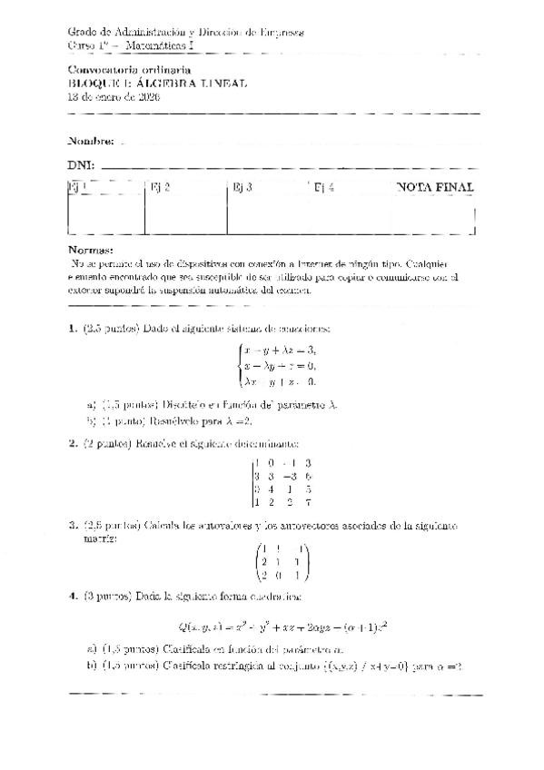 He publicado nuevos examenes de 1º Matemáticas I: Examen-ALGEBRA-LINEAL-Ordinaria.pdf