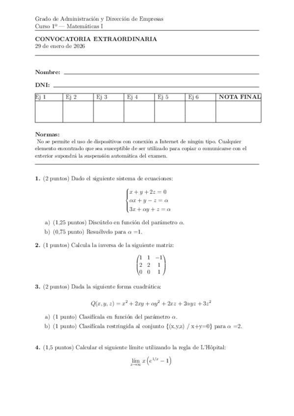 He publicado nuevos examenes de 1º Matemáticas I: Sol-Examen-EXTRA-29-ENE-2026.pdf