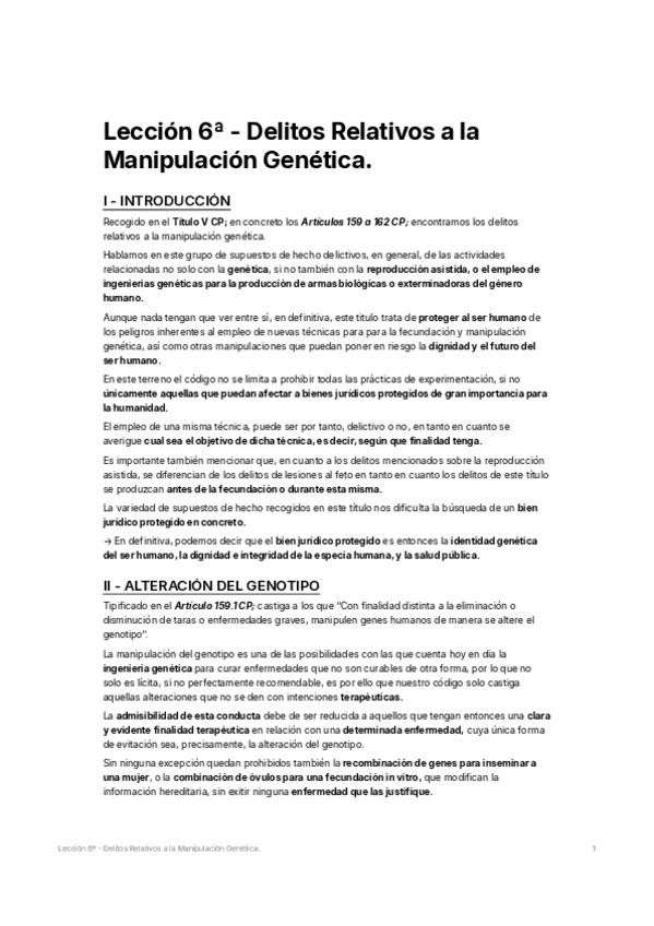 Apuntes Relativos a la Lección VI de Derecho Penal II, 2025/2026; Grupo I