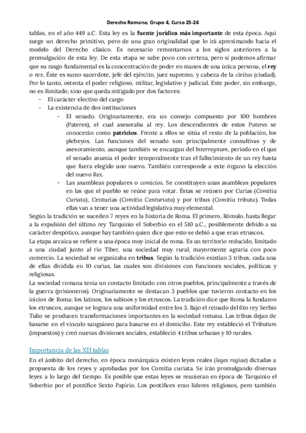 Apuntes de derecho romano sobre la evolución histórica del derecho en todas las etapas con contexto histórico, social y fuentes del derecho.