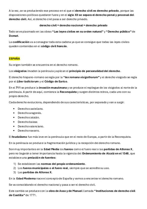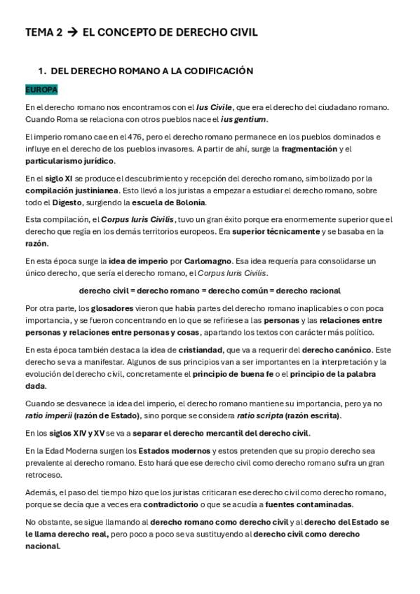 Tema 2 de la asignatura derecho civil 1 sobre la evolución histórica del derecho civil en España.