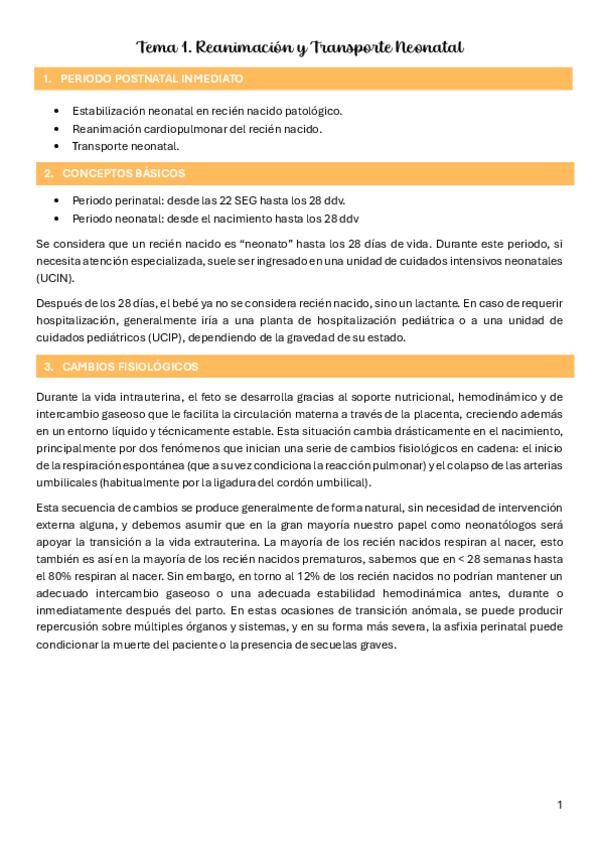 Tema 1, bloque 3: Presentación reanimación y transporte neonatal