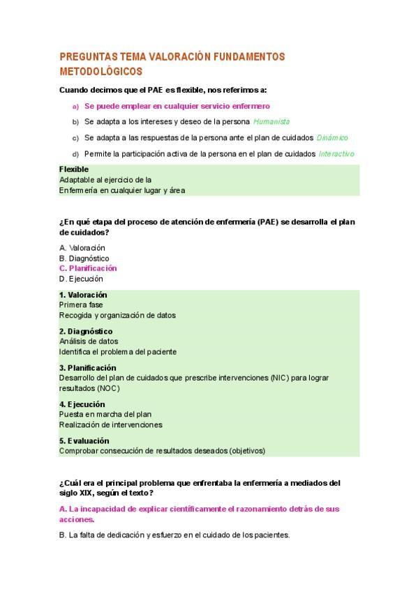 preguntas fundamentos metodológicos TEMA 1 PAE y valoración