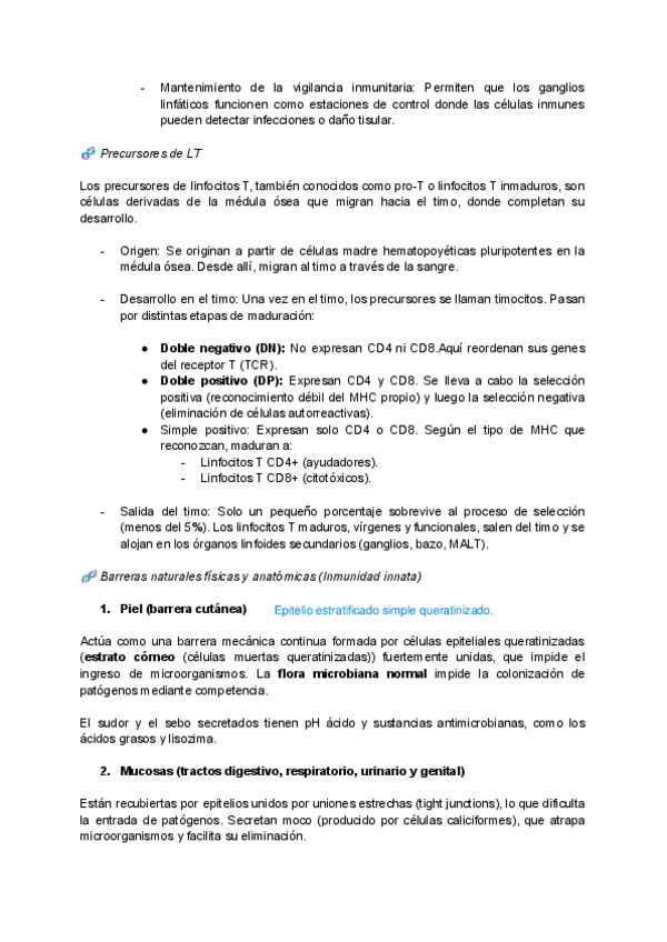Apuntes estudiantiles sobre inmunología innata y adaptativa, con imágenes ilustrativas y esquemas.