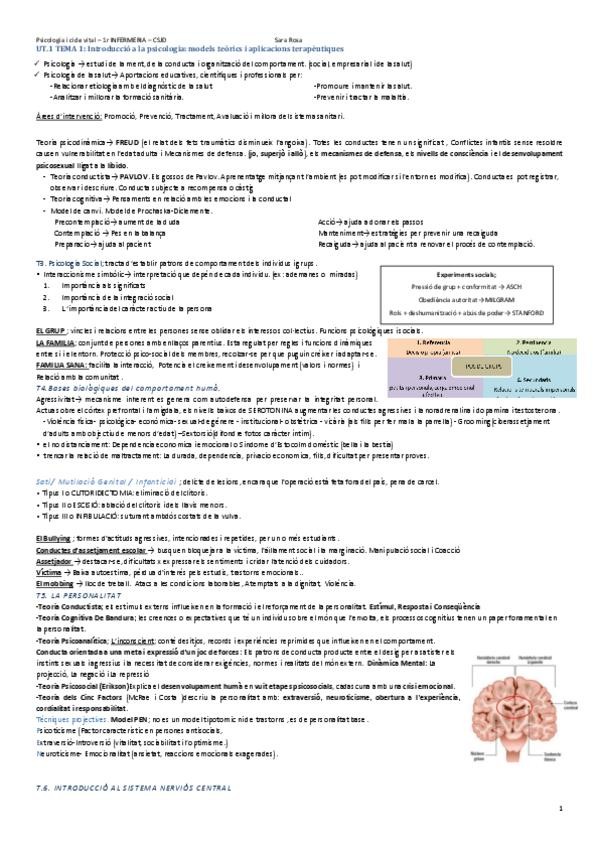 RESUMEN TODO UT1: Introducció a la psicologia UT2: Psicologia de la salut (Pendiente de retocar cuando la terminemos en clase) UT3: Psicologia evaluativa
