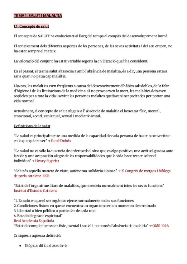Apunts bloc 1: -Tema 1: Salut i malaltia - Tema 2: Determinants de la salut - Tema 3: Demografia - Tema 4: Epidemiologia