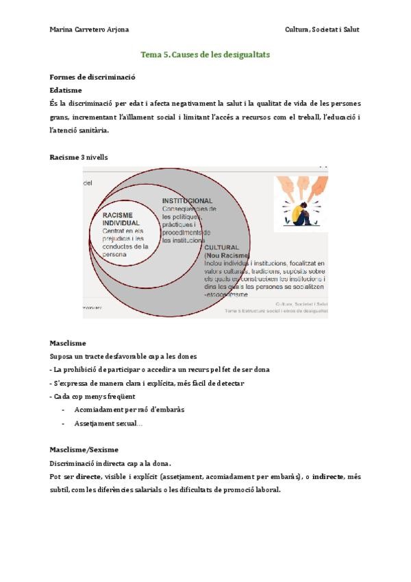 Tema 5. Estructura social i eixos de desigualtat Tema 6. Gènere i Salut Tema 7. Discapacitat i salut Tema 8. Estigma i malaltia