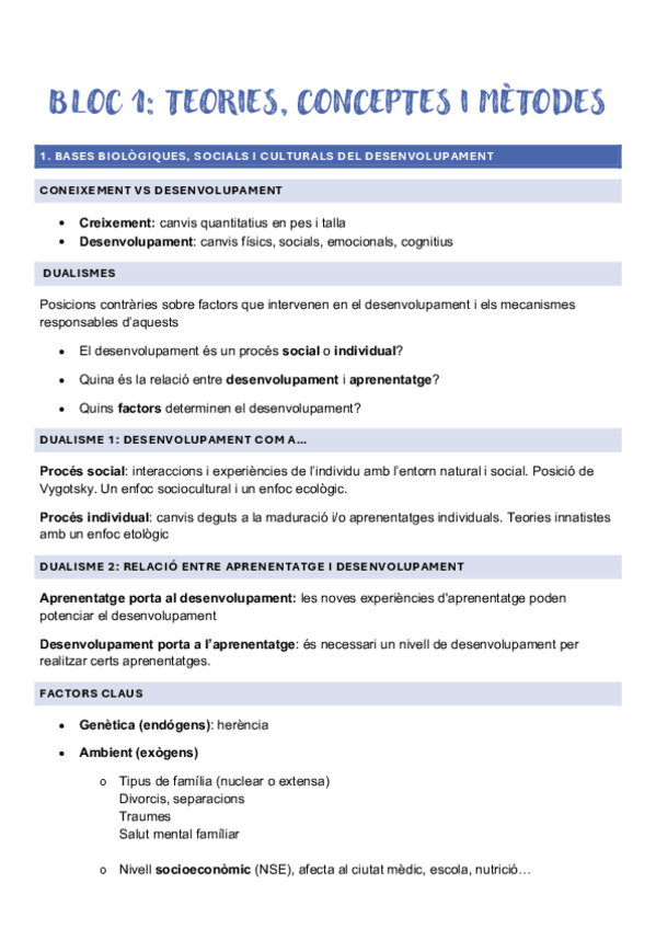 Apunts sobre el bloc 1 de Psicologia del Desenvolupament