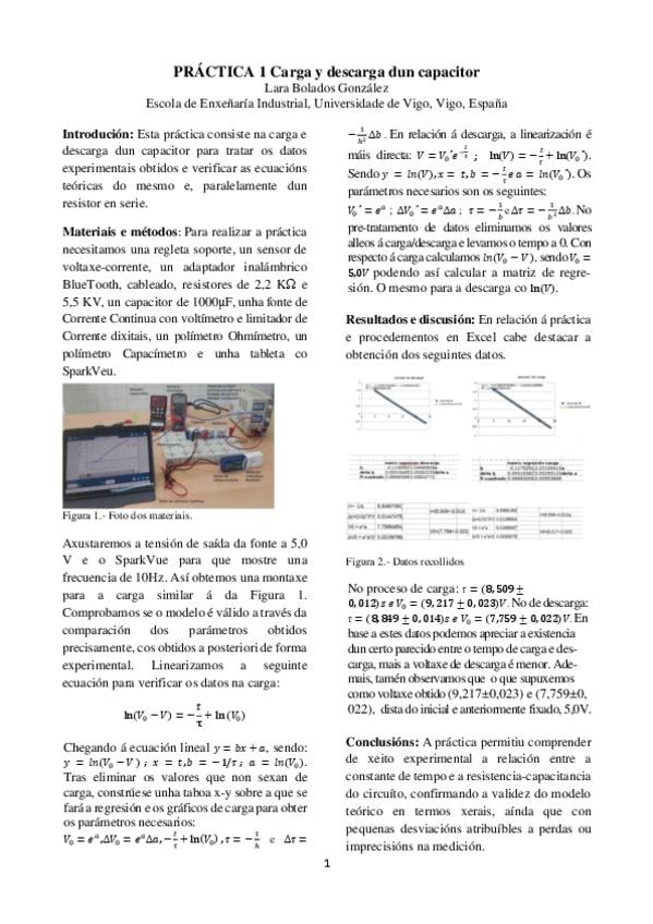 Memoria Práctica I Física II- Carga e Descarga de un Capacitor