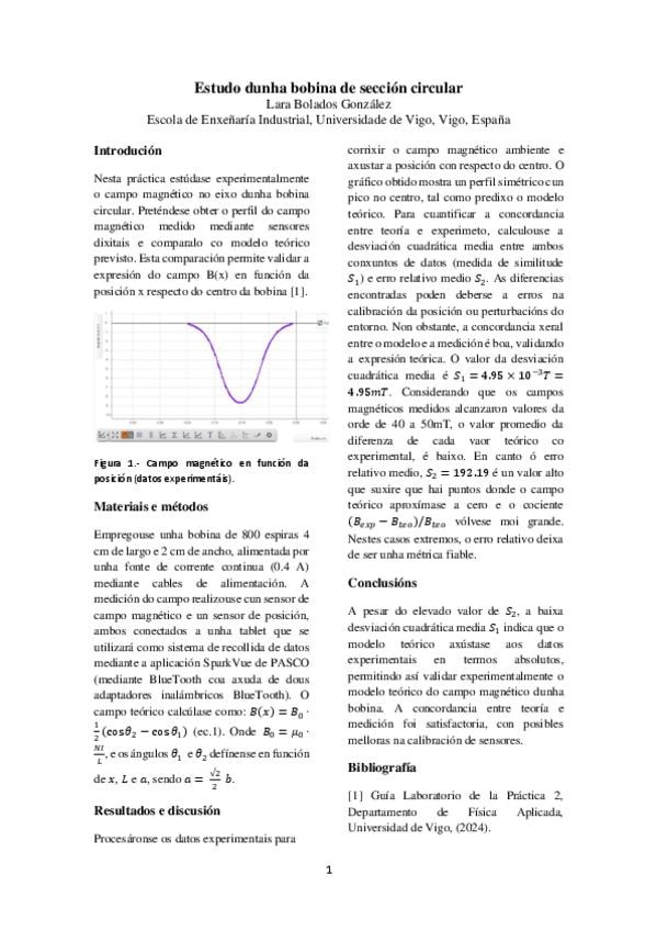 Memoria Práctica II Física II - Campo magnético dunha bobina