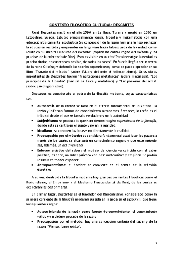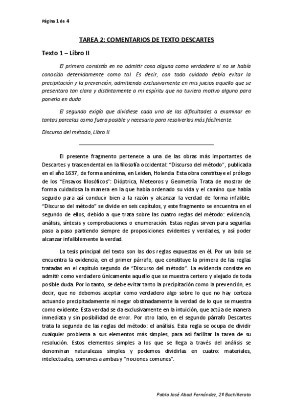 Descartes - Resumen y comentario de texto