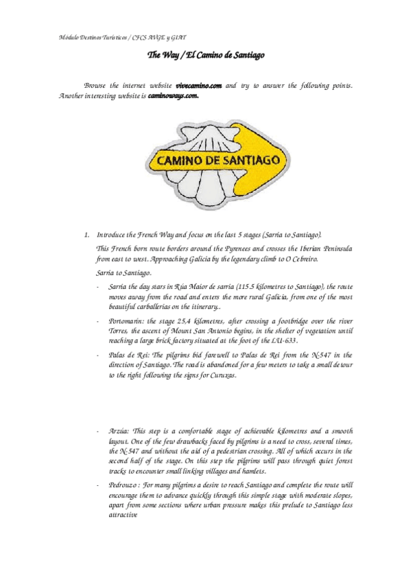 He publicado nuevos trabajos de Destinos turísticos: Camino-de-Santiago.doc