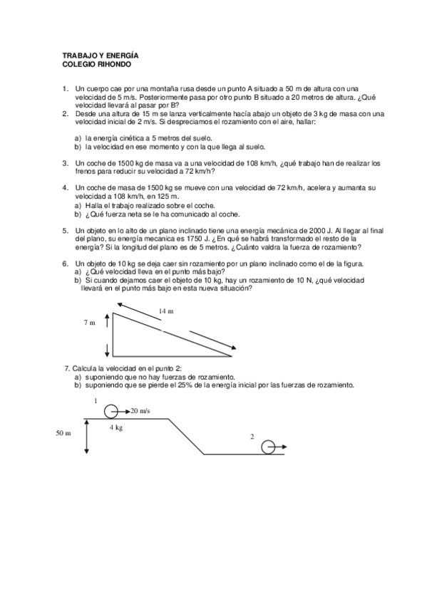 ejercicios repaso energía y trabajo